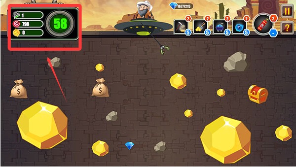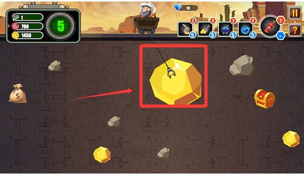 1、玩家需操控矿工手爪,在地下矿藏中寻找黄金、钻石等宝物,完成每局设定的目标金额后方能通关。
