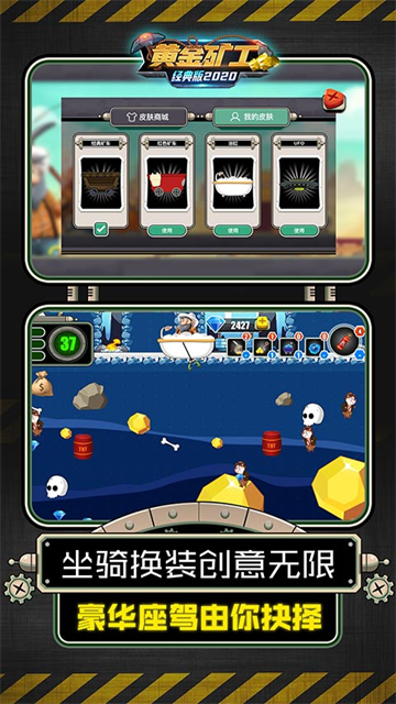 4、通过升级淘金车和购买各种道具,不断提升挖矿效率和手爪性能,逐步挑战更高难度的关卡和目标。