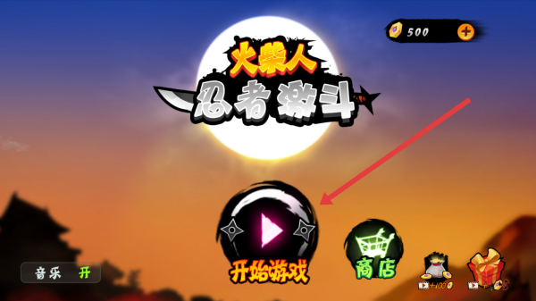 1、在游戏启动页,点击【开始游戏】,进入【火柴人忍者激斗】,开启忍者战斗冒险之旅。