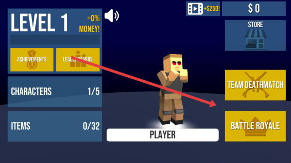 1、主界面,点击【BATTLE-ROYALE】,进入【Pixel-Battle-Royale】大逃杀模式,匹配对局,开启生存竞技。