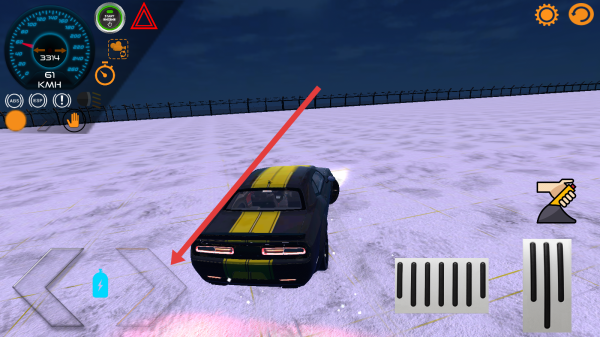 2、驾驶时,按箭头指引,操控虚拟按键(方向),在雪地赛道行驶,注意速度表(394KM/H等),保持车辆稳定。