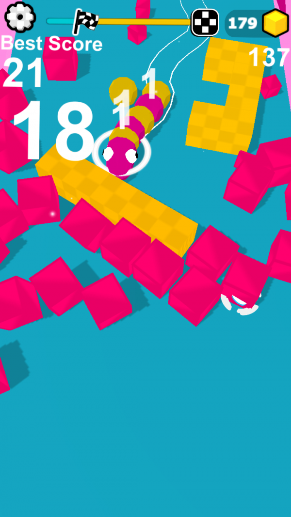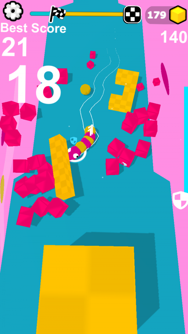 1、视觉动感舞台:高饱和度色彩与流畅动画结合的美术风格、蛇身移动生成绚丽尾迹、成功完成高难度破坏触发全屏特效、全方位打造极具视觉冲击力的破坏场景。