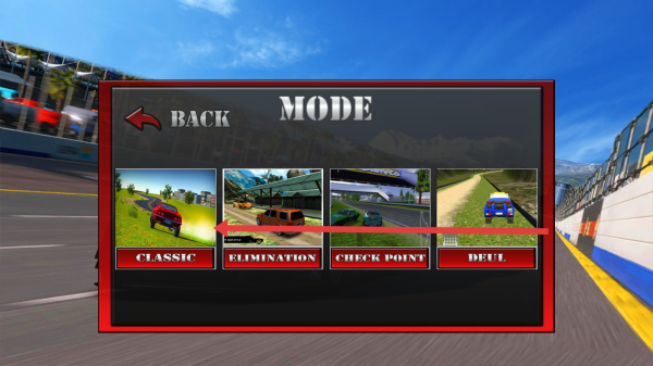 2、模式选择,点击【CLASSIC】,进入经典模式,匹配绿色赛道场景,开启传统竞速玩法。