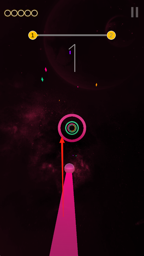 1、进入游戏后选择任意关卡,球体自动随音乐节奏向前移动,通过左右滑动屏幕控制球体切换轨道。