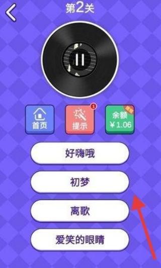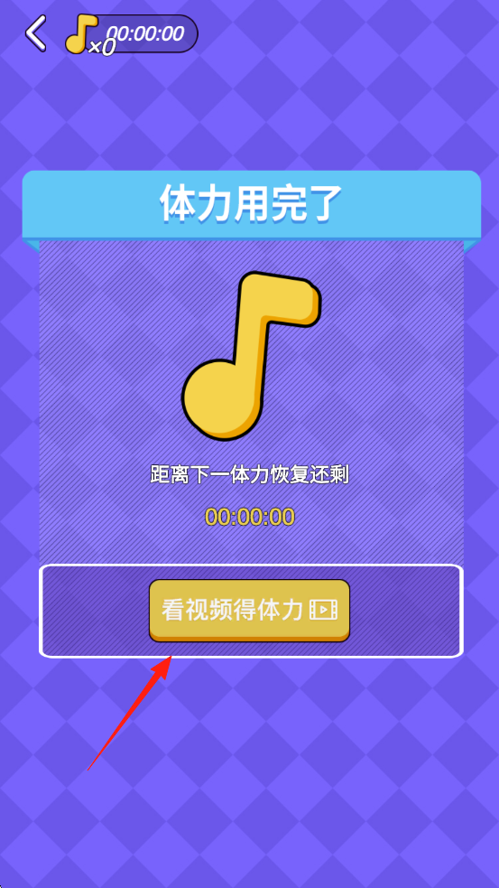3、在玩猜歌过程中,如果体力消耗完了,可以根据红色指示箭头点击看视频得体力。