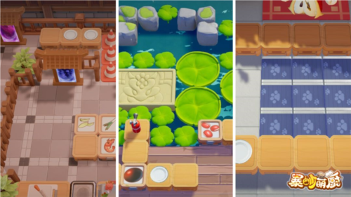 2、丰富美食与烹饪:涵盖水果、甜品、各系菜谱,掌握煎、炒、烩、烤等多样烹饪方式,借传送带、火焰、浮板、传送门等机关打造特色关卡。