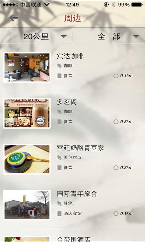 自定义周边圈半径,查看圈内商家信息和离你的距离