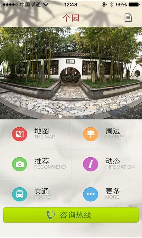 个园app是一款专门为个园打造的一款游览服务软件,用户可以通过软件一键拨打咨询热线,查看个园的地图,交通信息,周边的商家,以及园林知识普及等,是一款去个园旅游的助攻神器,需要的朋友赶快来下载体验吧!