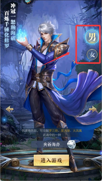 2、然后创建一个角色,选择好角色的性别开始。