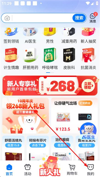 新人注册268元礼包,买药低至1元起
