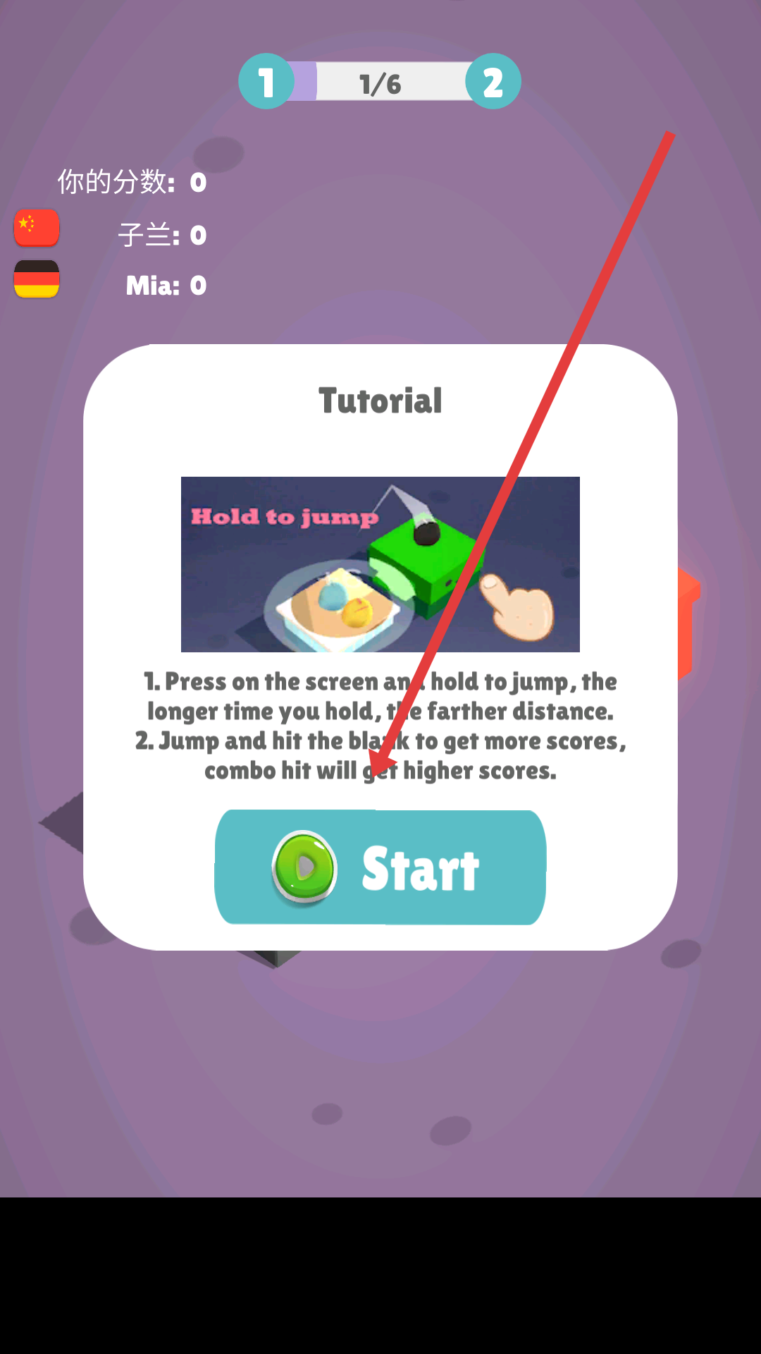 1、点击Start,开局先来一把跳一跳,测试你农场小鸡的战斗力。