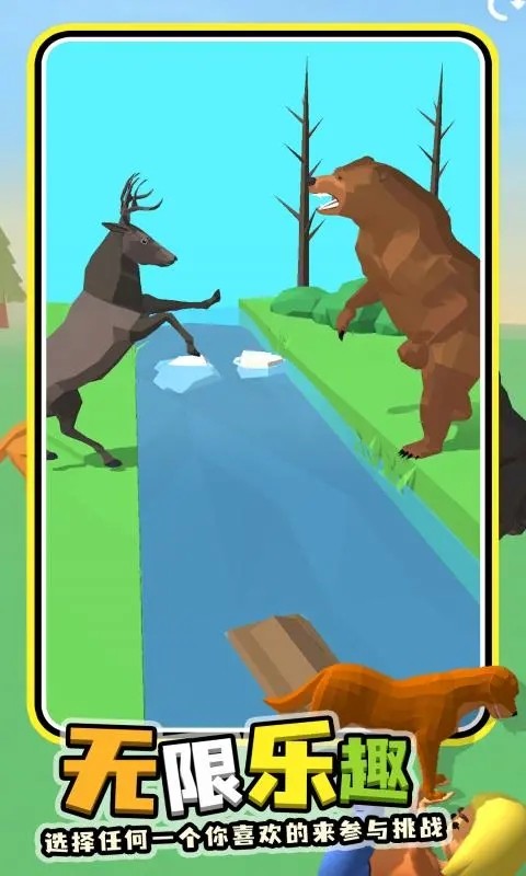 3、选喜欢的动物,让其参与挑战,像鹿和熊在河边互动这类玩法推进流程。
