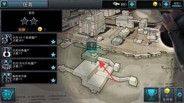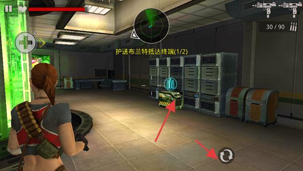 3、护送任务中,保护“布兰特”抵达终端,用掩体躲伤害,点击技能键清围堵僵尸。