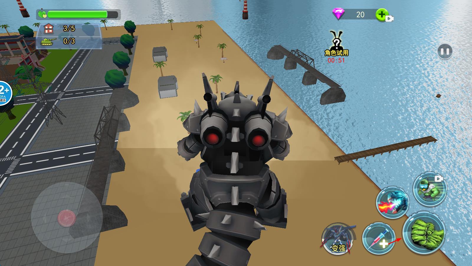 1、自由破坏:在破坏模式中无拘无束,操控怪兽碾压建筑、践踏街道,享受“毁灭一切”的快感,释放生活压力。