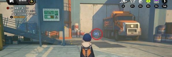 2、场景交互识别:进入澄辉坪场景,依据地图点位,在仓库、卡车等建筑附近,寻找蓝色交互标识(小卡格车互动点),结合场景特征(如卡车、货架)快速定位。