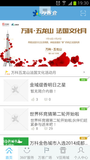 成都万客会APP将线下服务与线上服务紧密结合,为业主带来更加便捷,舒适的服务体验。便民服务,活动报名,楼盘关注,租售中心,房屋报修,一切功能,尽在成都万客会。