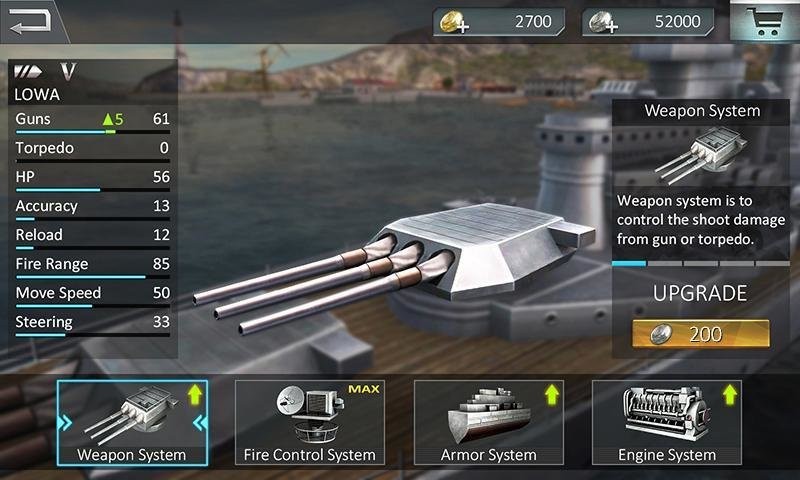 4、深度养成体系:升级战舰的主炮、装甲、引擎等部件,招募像麦克阿瑟这样的名将提供属性加成,并搭配“防空弹幕”和“紧急维修”等主动技能。