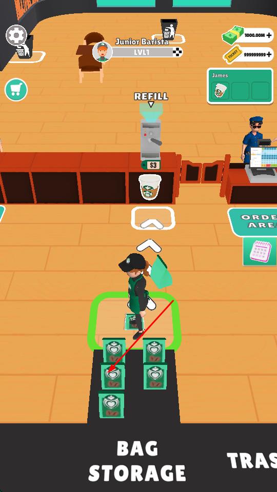 1、开业初期先选购基础咖啡机与磨豆机,从阿拉比卡咖啡豆开始制作美式咖啡,点击顾客订单完成服务获取金币与经验值。