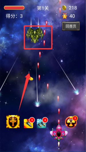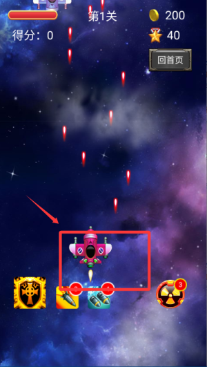 1、进入游戏先熟悉基础操作,左右滑动控制飞机移动射击,注意收集能量道具。