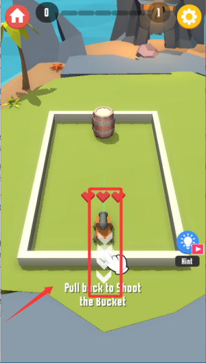 1、游戏开始先熟悉角度和力度控制,拖动屏幕调整发射角度,手指滑动距离决定炮弹力度。