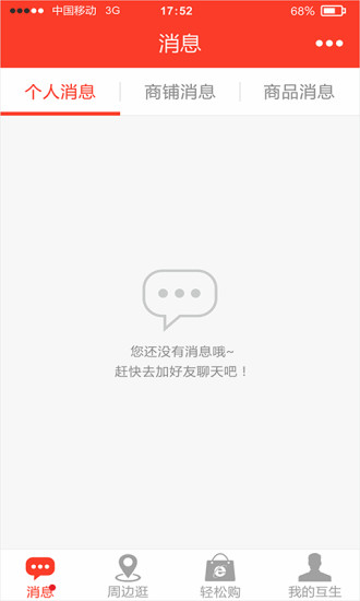 消息:用于用户与好友交流,用户与商家的互动以及接收消息通知等。