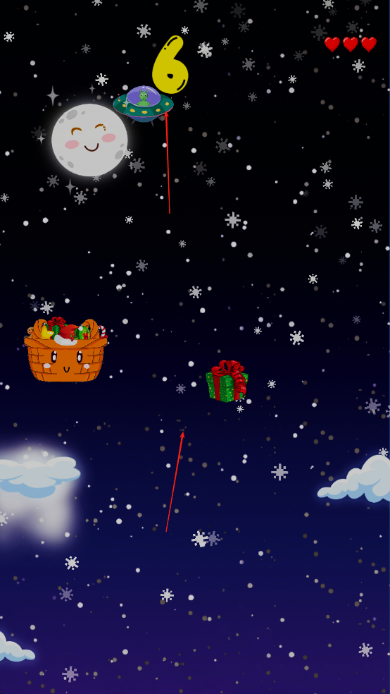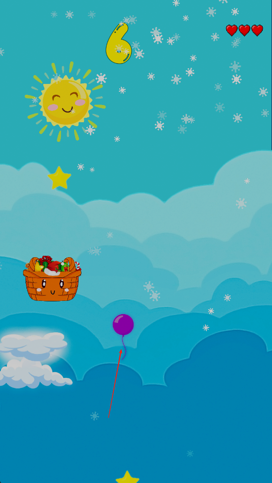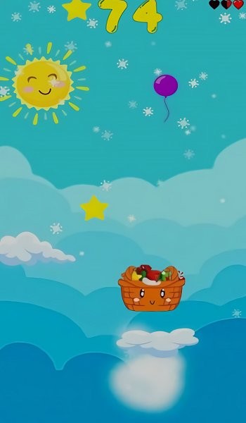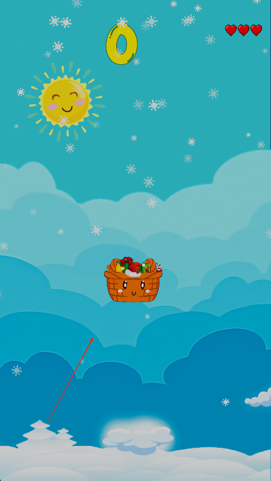 1、进入游戏后点击屏幕操控角色踩篮筐跳跃,长按可控制跳跃高度,松开即下落,需避开第一关出现的旋转雪球障碍。