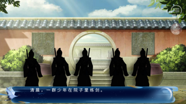 2、推进剧情,按提示体验“清晨,一群少年在院子里练剑” 等情节,持续点击或操作,解锁后续故事。