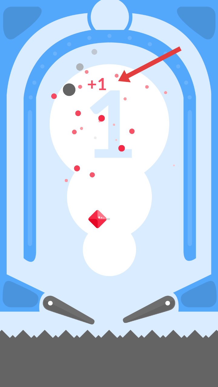 3、游戏中操控底部两侧挡板,击打红色弹珠,躲避尖刺等障碍,利用场景元素获取更高分数,推进游戏进程。