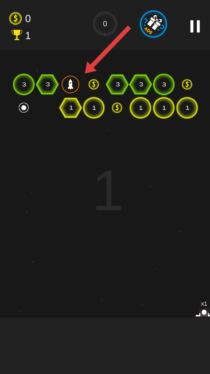 2、游戏中操控橙色火箭图标,优先收集金币与数字格子,提升资源和分数,推进关卡进程。