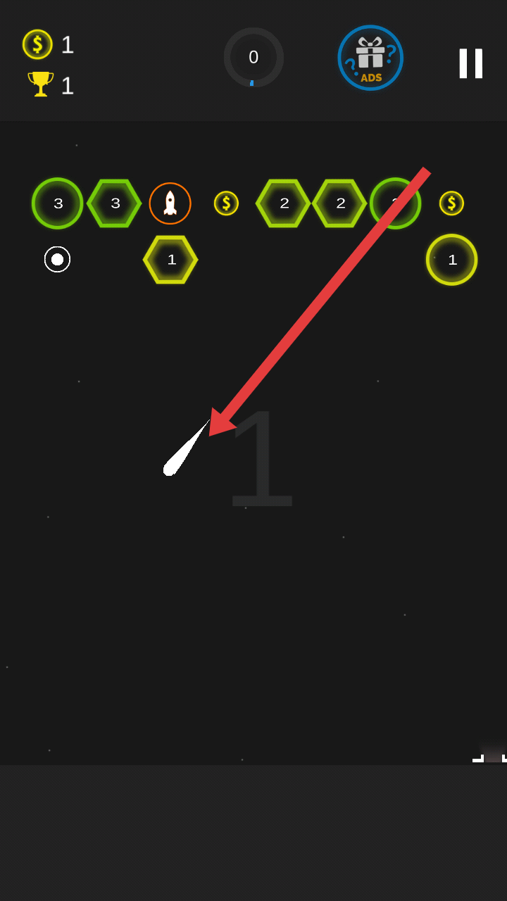 3、通过滑动或点击,调整白色箭头方向,指引火箭移动,精准击打目标格子,获取更高收益。
