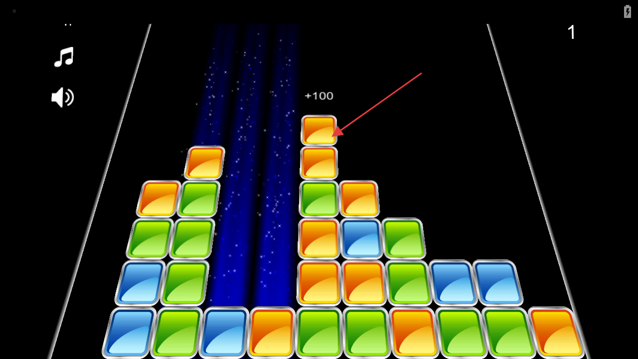2、关卡中,点击三个及以上相连的同色方块(如橙色、彩色方块组),使其消除,获取分数与奖励。