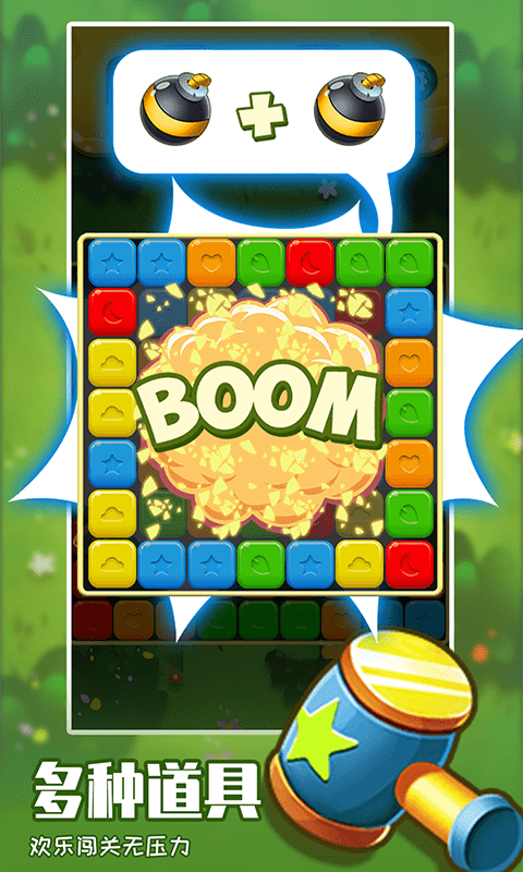 1、经典消除规则:点击2个及以上相邻同色方块即可消除,消除数量越多,触发的特效越强力(如全屏消除、十字爆破),合理规划消除顺序可形成连锁反应。