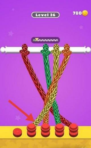1、Level26,彩色绳索(红、绿、黄、棕)缠绕,需解开对应红底座绳索。