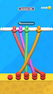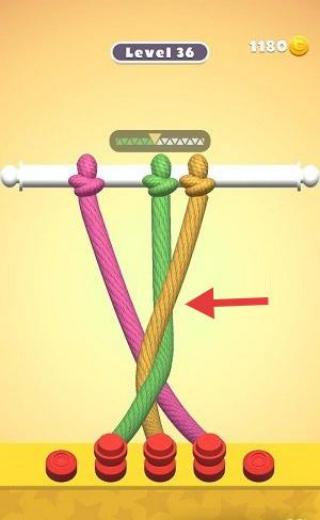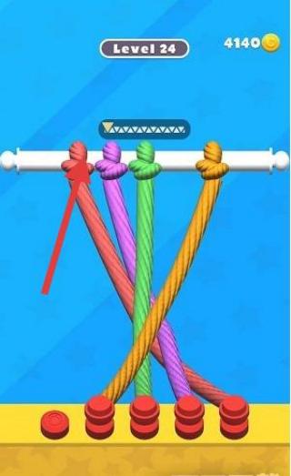 2、阶梯式难度关卡体系:超100关按“绳索数量/缠绕复杂度”分级,初级关含2-3根交叉绳索(如十字结),高级关扩展至8-10根绳索+障碍物(固定木桩、移动滑块)。