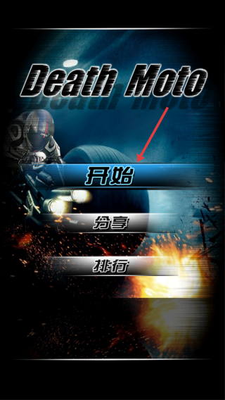 1、点击【开始】,进入《DeathMoto》游戏,选红色摩托(初始或解锁其他车型)。