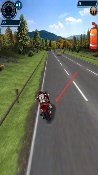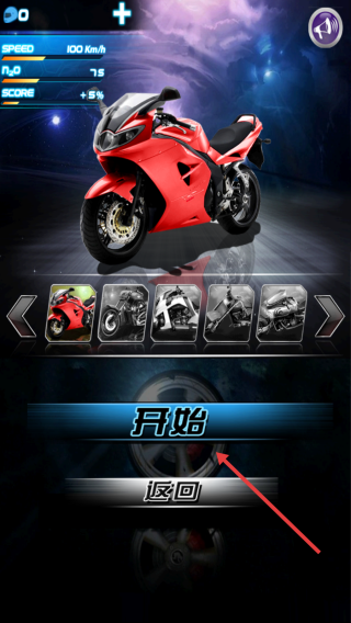 3、避车辆、利用道具(如右侧氮气罐),提升速度,冲高分,解锁新摩托、关卡。