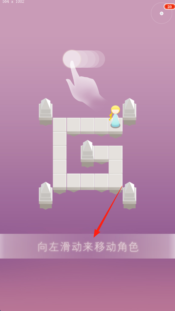1、依据提示向左滑动屏幕,控制角色在方块地图上向左移动,逐步探索路径。