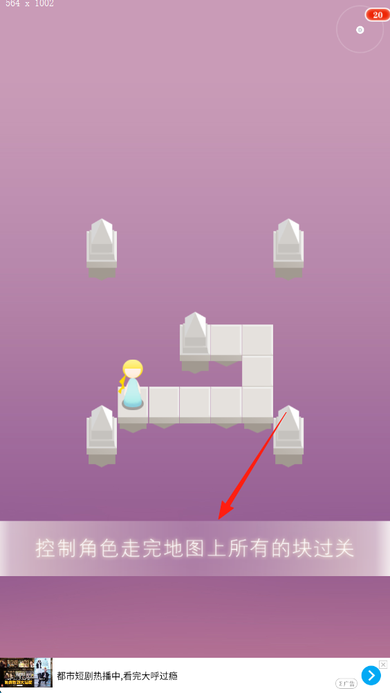 3、不断滑动屏幕控制角色,按上下左右方向,走完地图所有方块,达成通关条件。