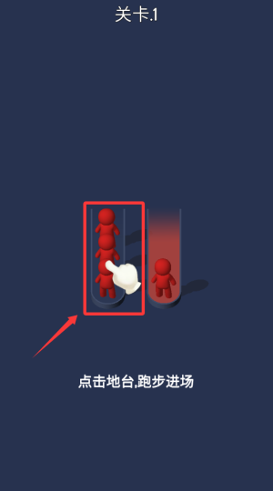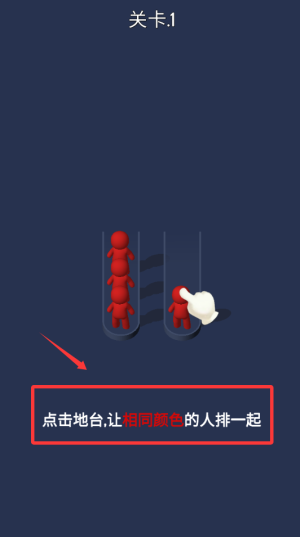1、进入游戏后,点击地台让相同颜色的人排一起。