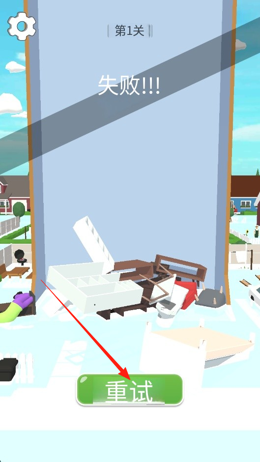 2、失败后选择重试,重新调整人物移动路线,巧妙穿越家具,避免被阻挡。