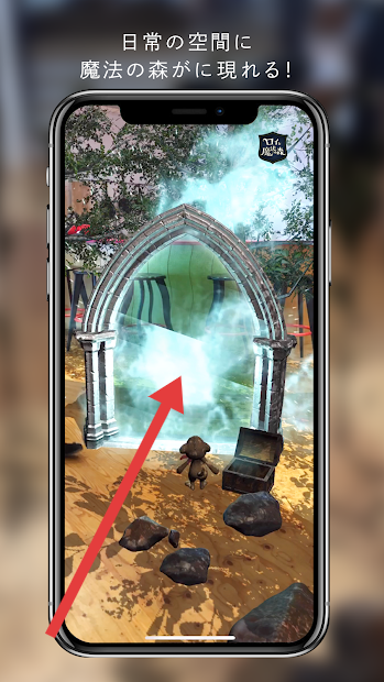 1、在AR场景,点击箭头指向的魔法传送门,进入“魔法の森”,开启现实融合的奇幻冒险,探索新区域。