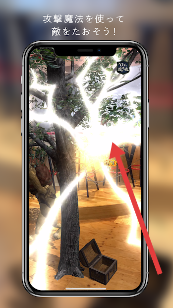 2、遇敌时,按提示“攻撃魔法を使って敵をたおそう”,点击箭头标记的魔法释放点,施展雷电等攻击魔法,击败敌人。
