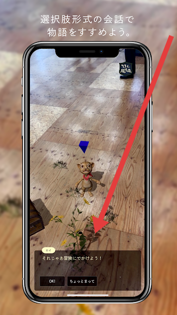 3、触发对话选择,面对“選択肢形式の会話で物語をすすめよう”,点击箭头指向的选项,推进剧情,解锁新冒险阶段。