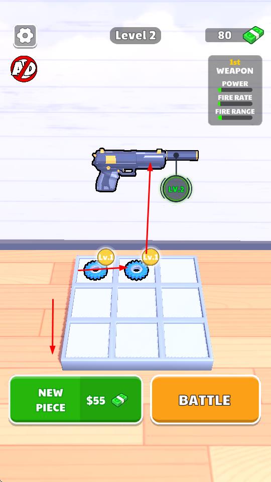 3、用闯关收益购买、合成武器部件,升级武器等级,提升属性,解锁更强枪械,挑战高难度关卡 。