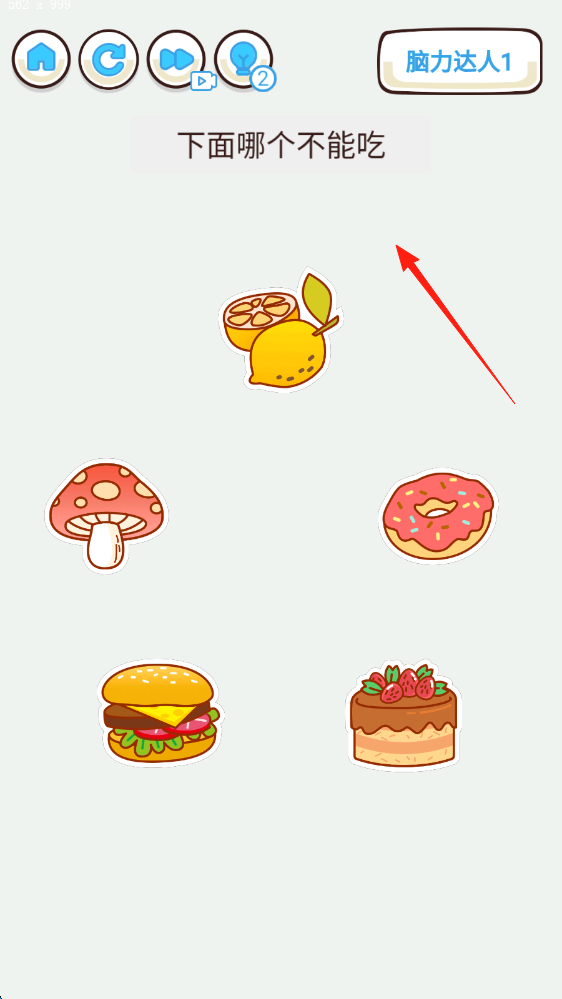 1、观察题目,查看六种物品,思考哪个不能吃,点击对应物品完成选择。