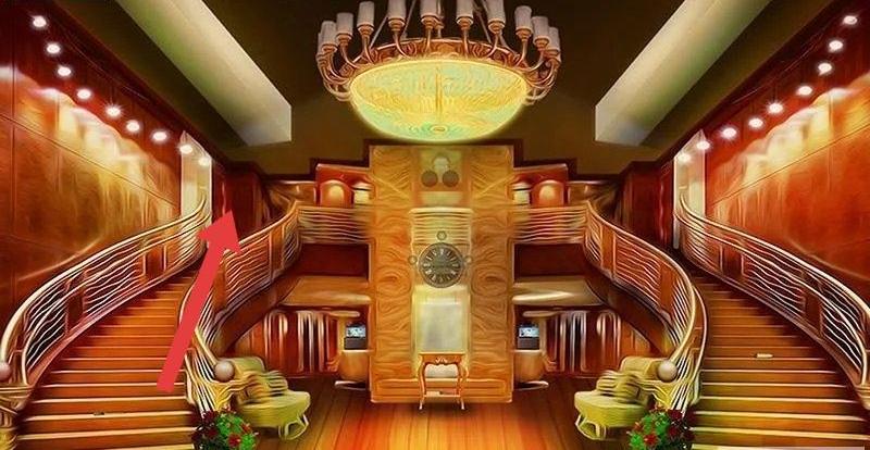 2、进入华丽大厅,留意吊灯、时钟细节,楼梯扶手、绿植可能藏钥匙,用大厅光线反射找暗门线索。