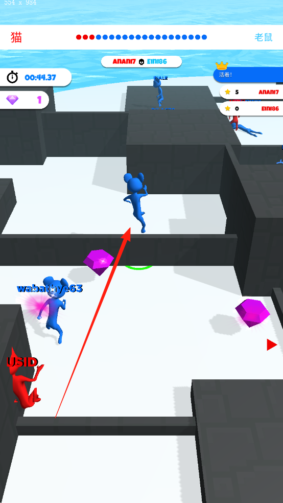 2、场景互动网络:场景中分布多种功能道具,加速道具提升移动速度,隐身道具暂时躲避追捕,障碍道具阻挡追捕者,合理规划道具使用顺序提升逃亡效率。