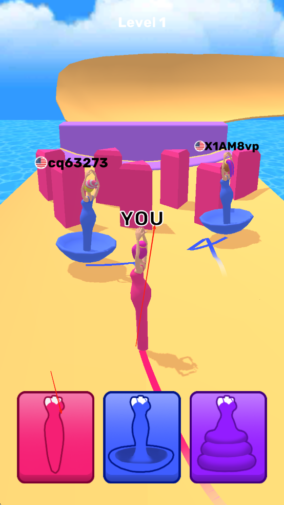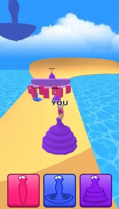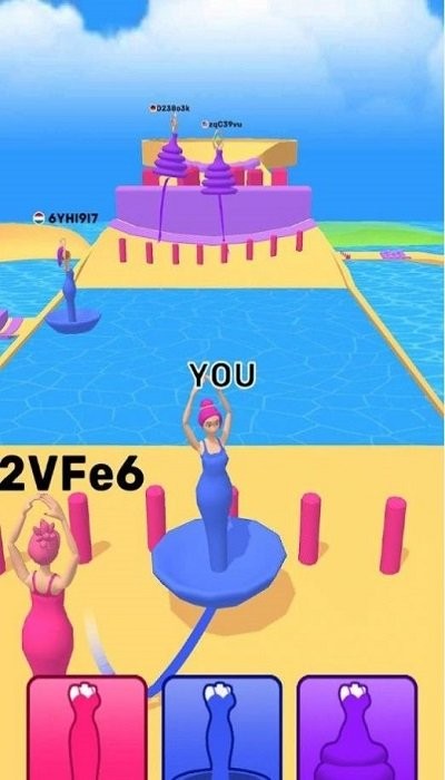 2、隐藏捷径探索:部分赛道存在利用裙摆特性的隐藏路径,如用粉色裙挤过岩壁缝隙直达终点,节省30%通关时间。
