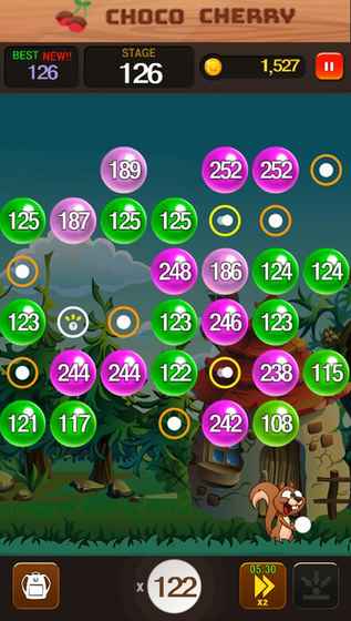 3、在进入关卡Stage2时,操控者需要优先击打带数字“2”的绿色球与中间道具,助力砖块消除。