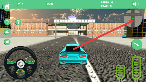 3、驾驶过程中,参照右上角小地图里的【绿点】标记,跟随导航指引操控车辆行驶,明确前行方向。